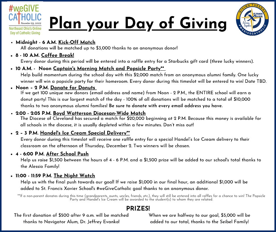 We need your support to shape our school’s future. Please support St. Francis Xavier School on Tuesday, November 29th!